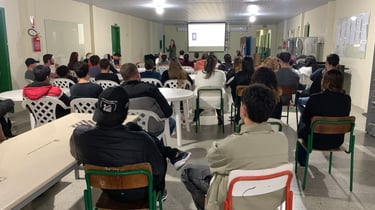 No dia 08 de outubro de 2025, os alunos do Ensino Fundamental e do Ensino Médio da Educação de Jovens e Adultos participaram de uma palestra com a psicóloga Taise Girardi Scheffmacher cujo tema era voltado a questões de saúde mental, gerando reflexões acerca da temática.