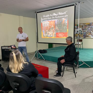 E durante a nossa semana cultural com exposição de trabalhos e oficinas, tivemos a honra de receber, em nossa escola, o Sr° Hans Peter Ihringer.